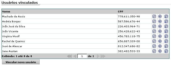 Os resultado da consulta é apresentado logo abaixo dos campos, na tabela da seção Usuários vinculados.